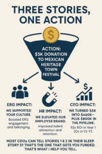 Most Chief Diversity Officers can tell the first two stories with ease. But story three? That’s the one that gets you a seat at the budget table. That’s the one that earns support from the CFO, the CEO, and the board. And that’s the one we specialize in helping you build, refine, and deliver with confidence.